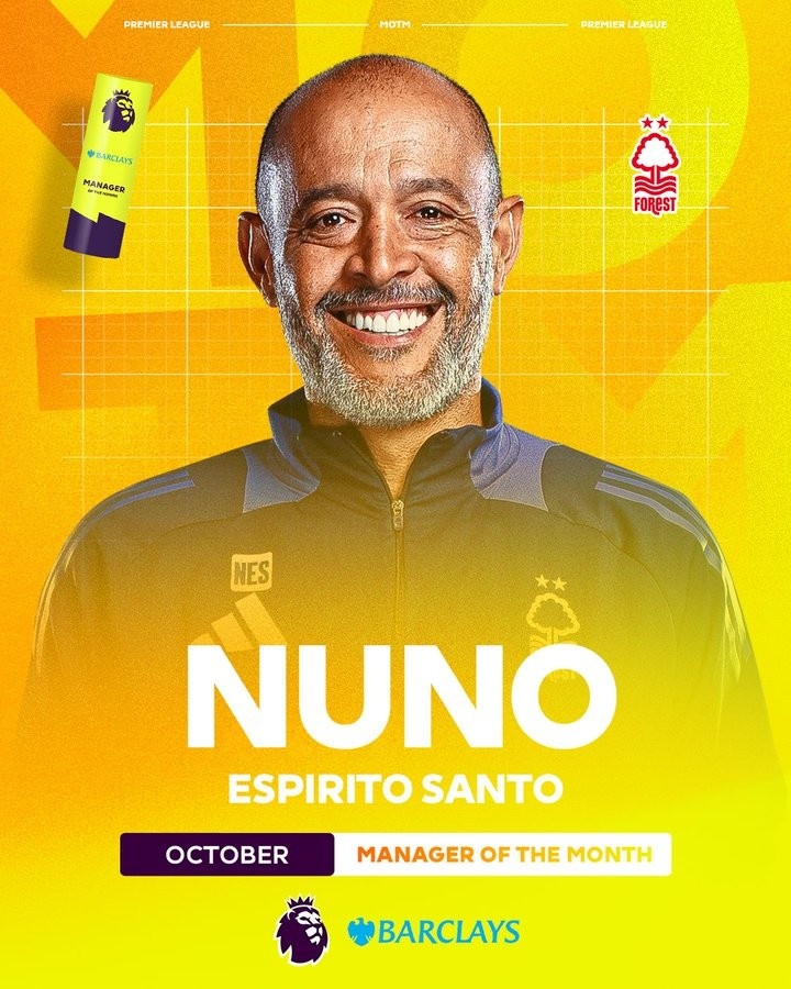 3戰(zhàn)2勝1平帶隊沖進前三!森林主帥努諾當選英超10月最佳教練