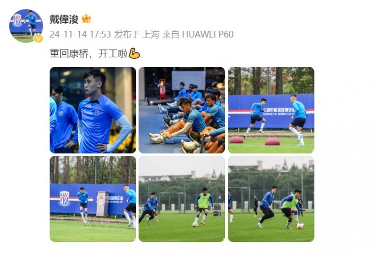 戴偉浚曬回歸申花訓(xùn)練照:重回康橋,開工啦