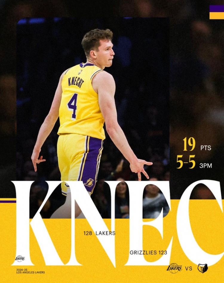 這新秀給力!湖人贏球海報:三分5投5中的克內(nèi)克特
