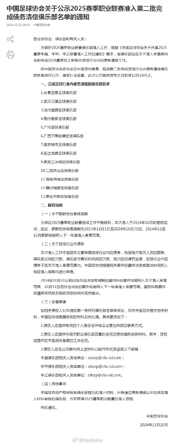 第二批完成債務(wù)清償俱樂部名單,不在第一批名單的全員上榜