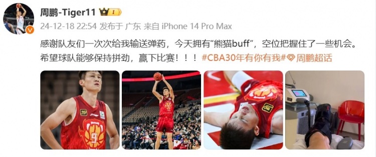 周鵬:今天擁有“熊貓buff” 感謝隊友們一次次給我輸送彈藥