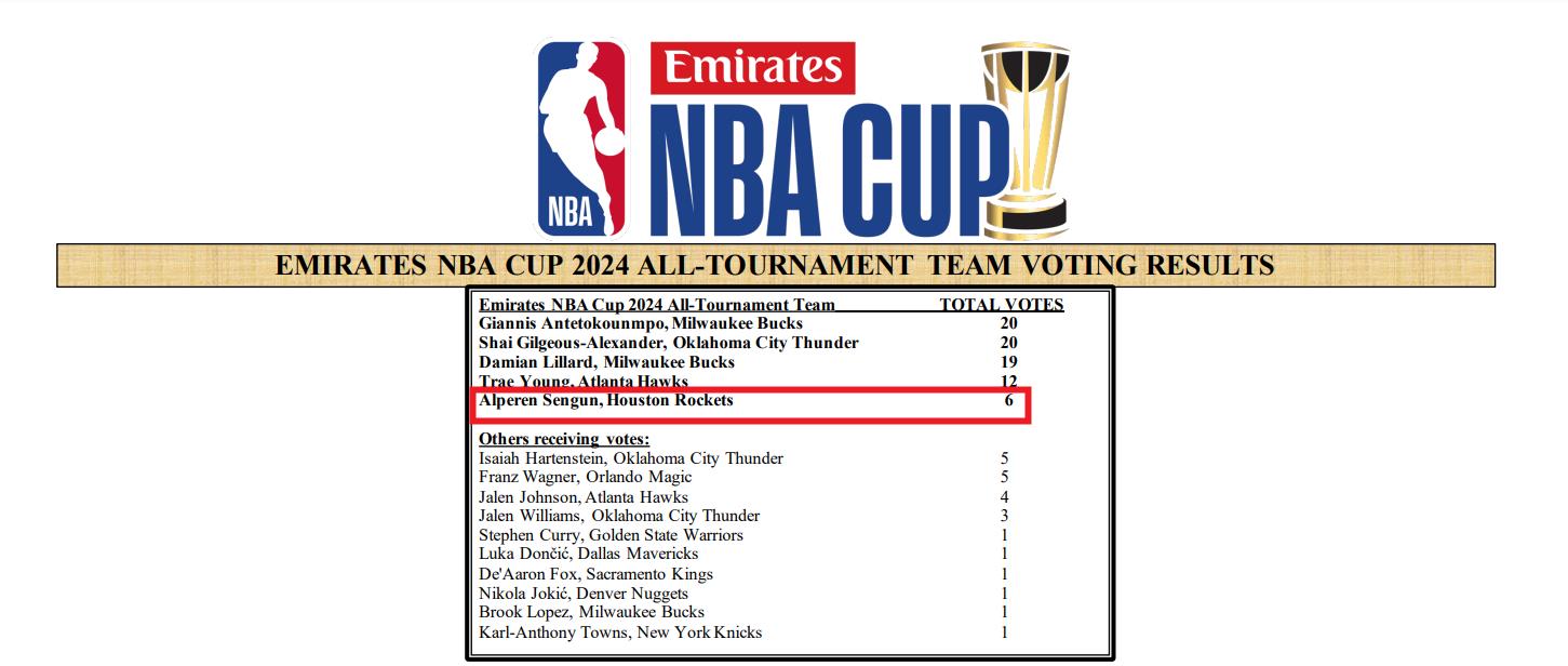 申京以6票入選NBA杯最佳陣容火箭其余人0票
