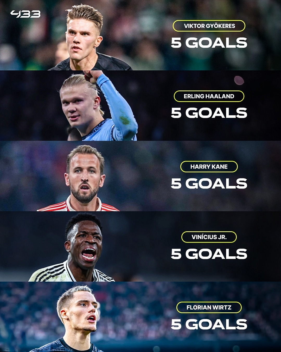 歐冠射手榜:萊萬7球居首,拉菲尼亞&吉拉西6球 哈蘭德&凱恩等5球