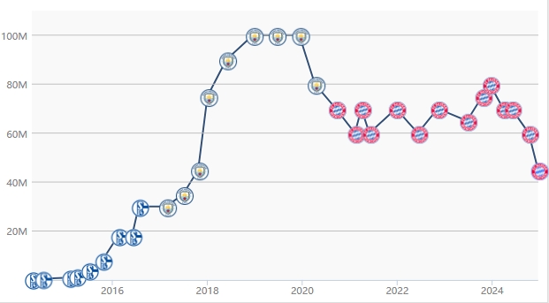 還續(xù)嗎?薩內(nèi)身價(jià)暴跌至4500萬(wàn)歐&巔峰1億,年薪2000萬(wàn)合同剩半年