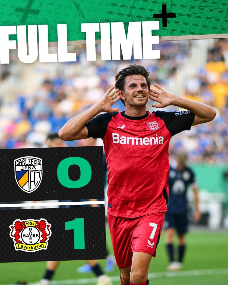 傷停補時6分鐘。比賽結束時,勒沃庫森1-0耶拿。