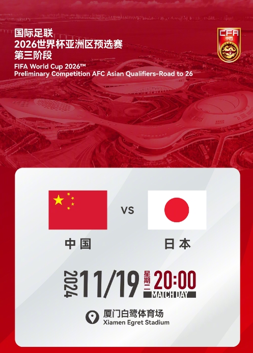 足協(xié)官方確認(rèn):11月19日國(guó)足主場(chǎng)vs日本的開(kāi)球時(shí)間為20:00