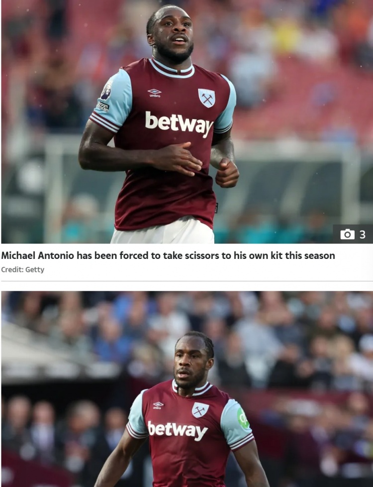 抱怨西漢姆球衣太緊箍住脖子,安東尼奧自己動(dòng)手把圓領(lǐng)剪成V領(lǐng)