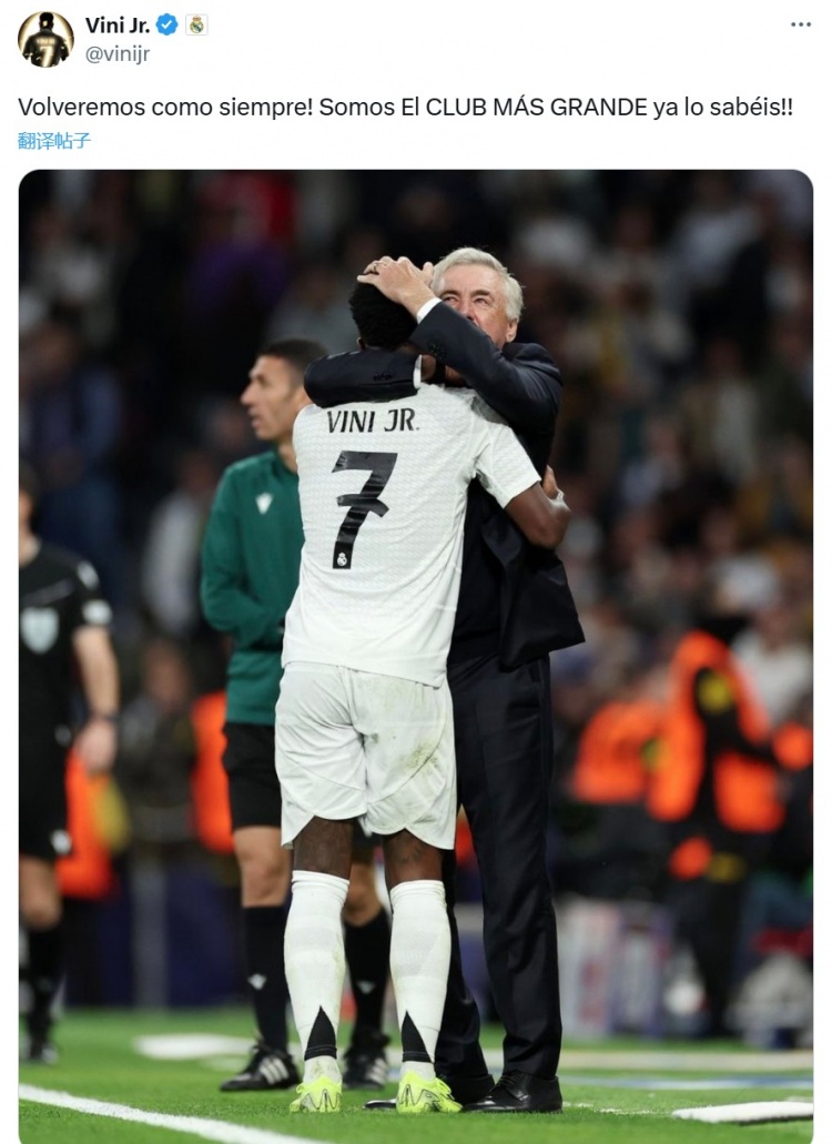 維尼修斯社媒:我們是最大的俱樂部,我們會一如既往強勢回歸