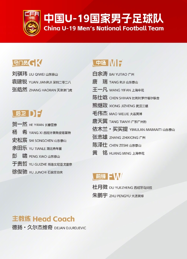 在U20亞洲杯歷史上,韓國(guó)隊(duì)12次奪冠排名第一;中國(guó)隊(duì)在1985年曾經(jīng)獲得過(guò)一次冠軍。目前這支U19(明年番號(hào)自動(dòng)變更為U20國(guó)足)由久爾杰維奇率隊(duì),本月將參加熊貓杯比賽,巧合的是,U19將分別對(duì)陣澳大利亞、吉爾吉斯斯坦、蒙古,提前演練明年的U20亞洲杯。